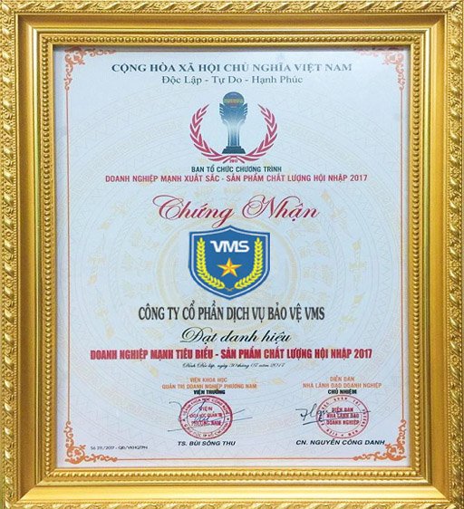 CÁC CHỨNG NHẬN CỦA VMS SECURITY ĐÃ ĐẠT ĐƯỢC